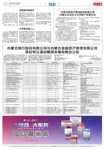 内蒙古金融资产管理有限公司作为上述债权的受让方,现公告要求各债务人、担保人以及其他相关各方,自公告之日起立即向内蒙古金融资产管理有限公司履行主债权合同及担保合同约定的偿付义务或相应的担保责任。如借款人、担保人因各种原因更名、改制、歇业、吊销营业执照或丧失民事主体资格,请相关承债主体、清算主体代为履行义务或者承担清算责任。