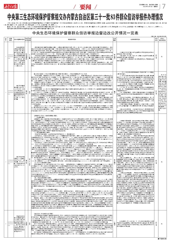 中央第三生态环境保护督察组交办内蒙古自治区第三十一批83件群众信访举报件办理情况