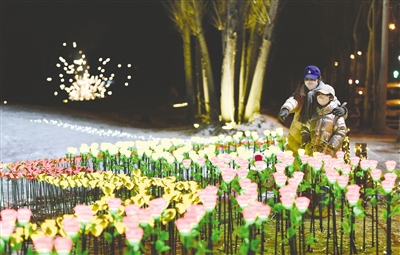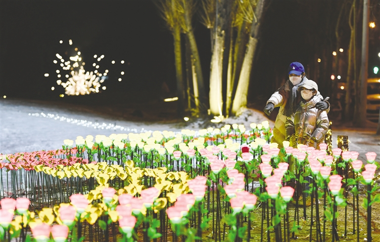 2022年12月31日,呼和浩特市民在小草公园内观赏各式花灯。随着“两节”的来临,呼和浩特市大街小巷、公园内处处张灯结彩,洋溢着红红火火的节日氛围。