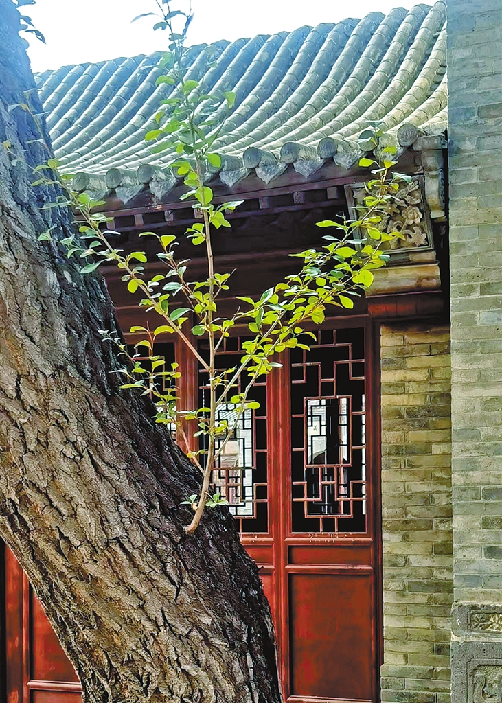 我以为,青城的青既苍茫朦胧,又触手可及。苍茫朦胧是一种意象美,如飞扬的蒙古马精神,如远去的老街驼铃,如蜿蜒飘荡的辽阔牧歌,如千年青冢的美丽传说。这种朦胧的意象美渗透到城市的角角落落,沁入人们的肺腑和方言之内,漫衍在城市的记忆与生活日常的光影之中。想起我的老师范诗银的一首《鹧鸪天·访青城数度遇雨》:“降雨何为赖小蛇,此情原有旧年约。长虹两度挂天宇,榆叶双回粘客车。青石板,紫花街。窗敲凉铎伞敲歌。四十二载前今日,霹雳一声滚旱河。”词中范老师两度遇雨,竟然与我此番经历暗合。而师言“青石板,紫花街”正是青城特有的古旧风貌,青色意象深入人心,由此可见一斑。