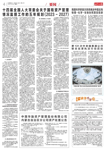 十四届全国人大常委会关于国有资产管理 情况监督工作的五年规划(2023-2027)