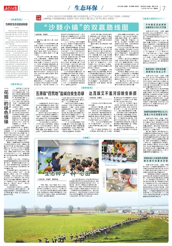 先后荣获鄂尔多斯市三八红旗手、“三北”防护林体系建设工程先进个人等荣誉的敖特更花,将绿色情缘寄托于一片片荒漠,誓与沙争锋,治沙治出生态效益和经济效益。