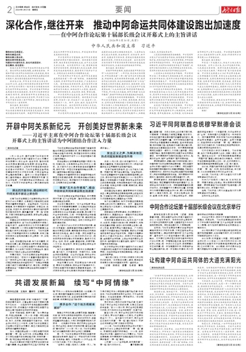 ~~~——习近平主席在中阿合作论坛第十届部长级会议开幕式上的主旨讲话为中阿团结合作注入力量