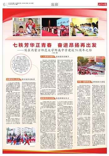 风雨不改凌云志,振衣濯足展襟怀。内师大附中始终秉持创新发展、追求卓越的教育理念,已经成为内蒙古基础教育的一面旗帜,未来将以更高的政治站位、更坚定的政治担当,激荡起培养优秀人才的澎湃力量。祝福奋进昂扬的内师大附中再铸辉煌,持续绽放更加耀眼光芒。