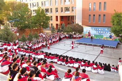 “校园里充满国之英才,朗朗书声响彻天边的云彩;养志创新教育之花盛开,是今天也是未来的附中期待……”这首《附中华章》是师生专门为70年校庆创作的歌曲,歌词唱出了师生们的心声,也是学校建设的真实写照。