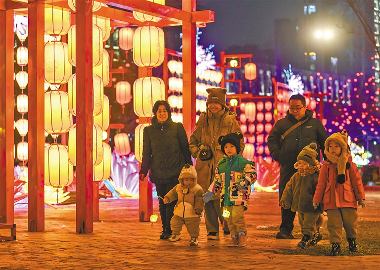 华灯初上,行走在呼和浩特市的夜色中,整个城市流光溢彩,充满喜庆节日氛围。色彩斑斓、造型各异的彩灯装点着大街小巷,吸引着众多市民游客赏灯游玩、打卡拍照,红红火火迎新年。