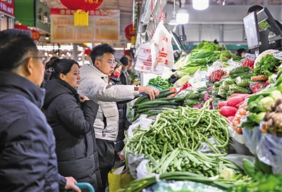 1月25日,呼和浩特市民在保全庄农贸市场选购年货。春节将至,呼和浩特粮油蔬果等商品市场货源充足、品种丰富、价格稳定,市场运行平稳有序。本报记者 孟和朝鲁 摄