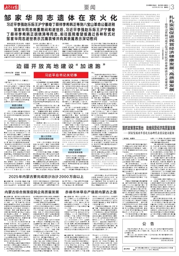 邹家华同志病重期间和逝世后,习近平李强赵乐际王沪宁蔡奇丁薛祥李希韩正胡锦涛等同志,前往医院看望或通过各种形式对邹家华同志逝世表示沉痛哀悼并向其亲属表示深切慰问