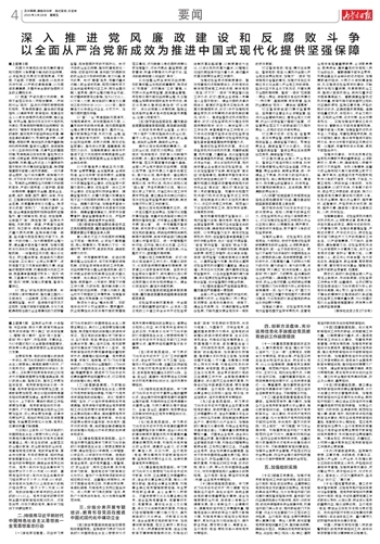 深入推进党风廉政建设和反腐败斗争 以全面从严治党新成效为推进中国式现代化提供坚强保障