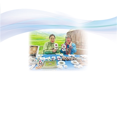 在呼伦贝尔市希仁鄂温克民族手工艺品厂,鄂温克姑娘艾吉玛正在和同伴们将动物皮毛、水晶珠、蜜蜡等通过搭配,缝制成太阳花胸针、车挂、冰箱贴等装饰品。