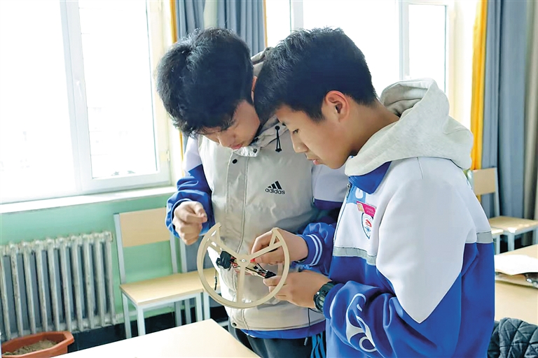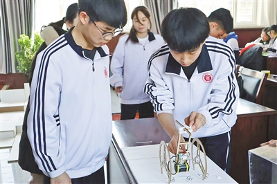 参赛学生在规定时间内将手中零件组装成太空车。 魏喜攀 摄