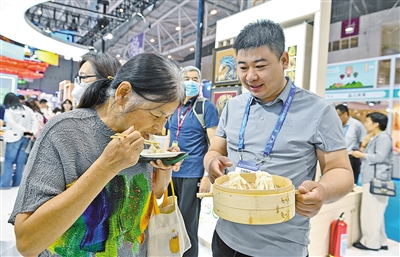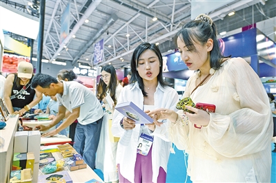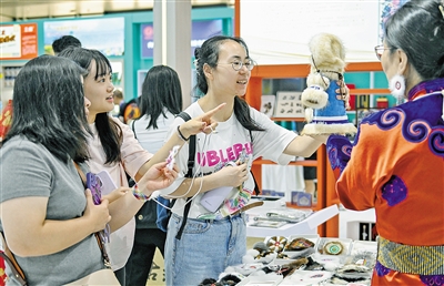 工作人员向参会者介绍来自内蒙古博物院的文创产品。
