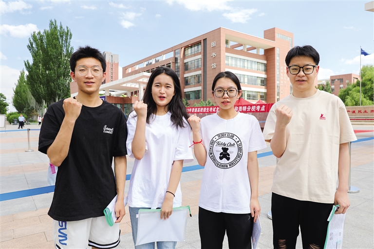 6月6日,在北京四中呼和浩特分校考点,考生们为自己加油鼓劲。内蒙古2023年高考于6月7~9日进行,高考报名人数21.1672万人,比2022年增加2.6541万人。北方新报携手完美启动第21次服务高考大型公益活动,在呼和浩特市第六中学、第八中学、第三十四中学、第二十九中学、第十八中学、北京四中呼和浩特市分校设立6个高考服务站,为大家免费提供解暑饮品、遮阳帐篷及相关服务。