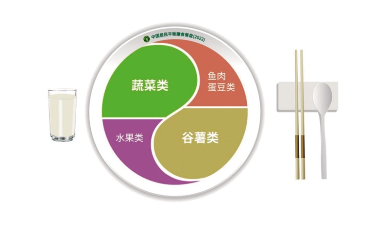 中国居民平衡膳食餐盘就非常直观,把这个盘子按照要求填满,则基本上是一个成年人一餐的食物组成和大致比例。