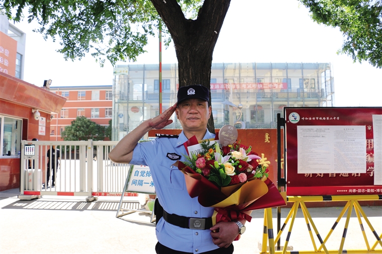 郝保清圆满完成了这次安保任务,接过同事们送上的荣退鲜花,他满心宽慰:“为孩子们高考站完这班岗,也为自己的从警生涯画上圆满句号,我和孩子们一起‘毕业’啦!”