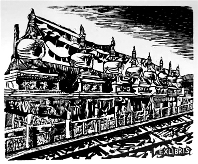 【小知识】藏书票,是一种小小的标志,以艺术的方式,标明藏书是属于谁的,也是书籍的美化装饰,属于小版画或微型版画。一般是边长5~10厘米见方的版画作品,上面除主图案外,要有藏书者的姓名或别号、斋名等,国际上通行在票上写上“EX—LIBRIS”(拉丁文)。这一行拉丁文字,表示“属于私人藏书”,藏书票一般要贴在书的首页或扉页上。藏书票被誉为“版画珍珠”“纸上宝石”。