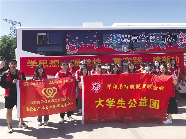 来自内蒙古医科大学、内蒙古师范大学、内蒙古大学的青年学子们纷纷献血,他们中不少人是内蒙古公益联盟志愿服务队成员。内蒙古公益联盟志愿服务队队长柳军等5人被聘为无偿献血宣传大使。当接过红彤彤的荣誉证书时,柳军说,每一次无偿献血志愿服务都能把爱传递给更多的人。他坚信献出的每一滴血,都能传送生命的活力,他将号召更多人加入到无偿献血队伍中来。
