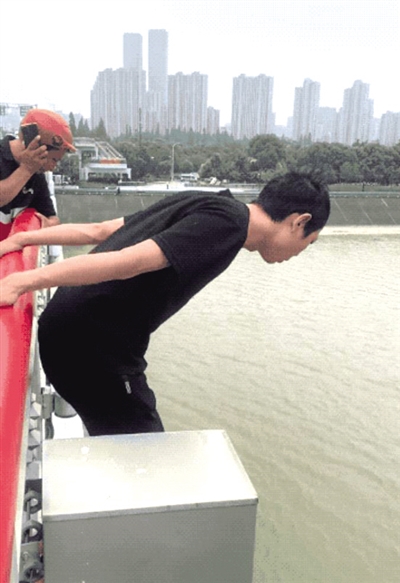 西兴大桥桥面距离江面约12米,彭清林心里也有点害怕。但他清楚,如果女子沉下去了,就真的没机会救了。他快速评估了一下,觉得自己能行,脱掉外套和鞋子,来回试探了两次,反复深呼吸之后眼睛一闭,纵身跳了下去。