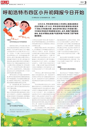 同时,新城区《招生工作实施方案》规定,呼和浩特市蒙古族学校的小学结业生可直接升入本校初中;有意愿选择新城区其他初中学校就读的,按照属地原则,可向新城区教育局提出申请,通过电脑派位方式升学。