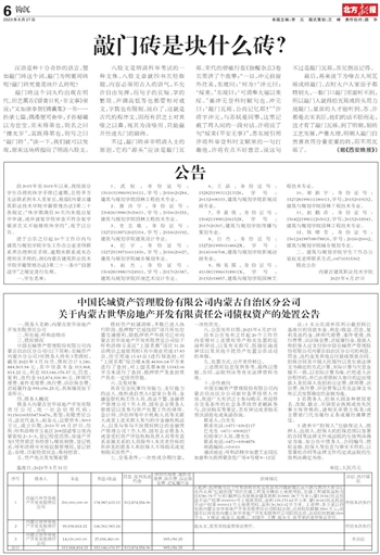 中国长城资产管理股份有限公司内蒙古自治区分公司 关于内蒙古世华房地产开发有限责任公司债权资产的处置公告