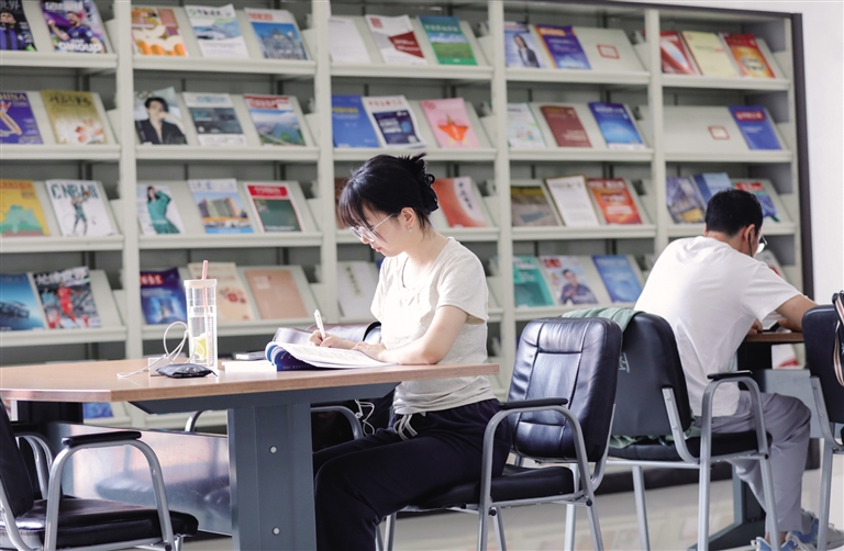 7月5日,一些市民在内蒙古图书馆看书、学习、纳凉。连日来呼和浩特气温居高不下,很多市民来到图书馆,沉浸在阅读的世界里,享受夏日慢时光。摄影/草原全媒·北方新报首席记者 牛天甲