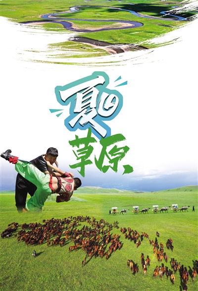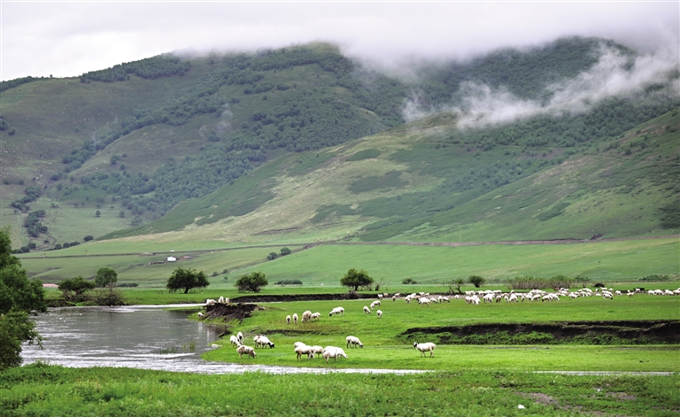 夏日时节,内蒙古草原绿意盎然、景色宜人,蓝天、白云、绿草、花海构成一幅幅美丽迷人的画卷。 (据新华社报道)