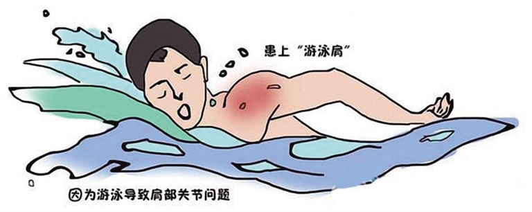 自由泳、蝶泳、仰泳的人群更容易患上“游泳肩”。如自由泳时,在“拉水阶段”多使用胸肌、阔背肌等内旋转肌,而在“恢复阶段”则多使用三角肌、冈下肌等外旋转肌。通常来说,外旋转肌较薄弱,极容易损伤。蛙泳时肩部活动的范围较小,因此会好一些。无论哪种泳姿,游泳动作不规范、不协调或时间过长,缺乏足够的热身,运动强度过大,都会让肩膀处于过度运动状态。