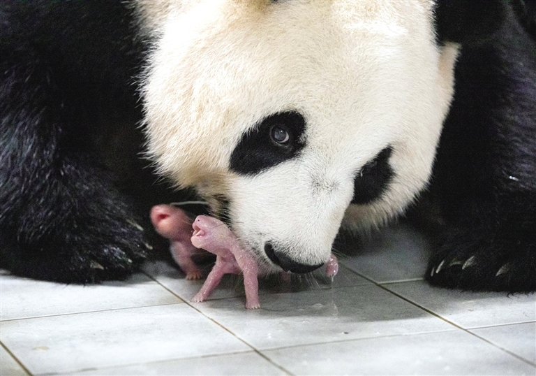 爱宝乐园介绍说,雌性大熊猫“爱宝”和雄性大熊猫“乐宝”(又名园欣)今年2月成功交配,这是它们继2020年产下“福宝”后在韩国第二次产崽。双胞胎幼崽老大于7日4时52分出生,体重180克;老二6时39分出生,体重140克。目前母婴状况良好。