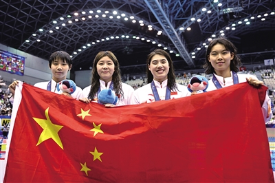 程玉洁、杨浚瑄、吴卿风和张雨霏代表中国队出战女子4×100米自由泳决赛,从第一棒的程玉洁起,中国队保持在前三名内。最终,澳大利亚队以3分27秒96刷新世界纪录的成绩夺冠,游出3分31秒93的美国队摘下银牌,中国队以3分32秒40获得铜牌,这一成绩刷新了亚洲纪录。杨浚瑄赛后表示,奖牌是大家合力拼出来的,“希望第一天就把我们的士气游出来,之后出场的队友也能创造好成绩。”