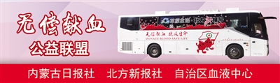内蒙古血液中心与《北方新报》持续开展无偿献血公益联盟招募活动,内蒙古血液中心爱心邀约热线:全血0471-4212330,血小板0471-4212245;《北方新报》爱心邀约热线:18686032799,欢迎广大爱心人士为无偿献血公益事业贡献一分力量。