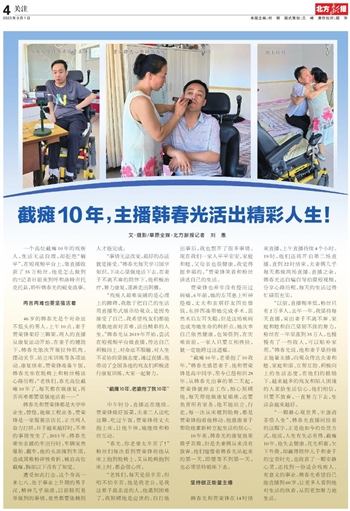 “事情无法改变,最好的办法就是接受。”韩春光每天学习国学知识,下决心坚强地活下去。在妻子不离不弃的陪伴下,他积极治疗,努力康复,逐渐走出阴霾。