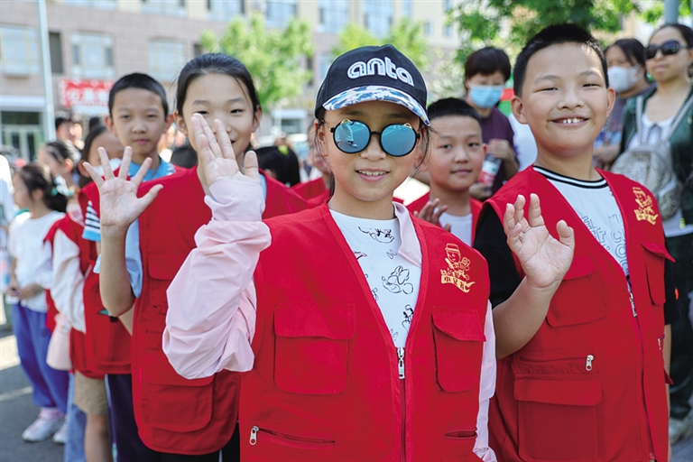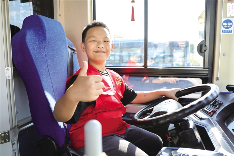讲解员向小记者们介绍乘坐公交车安全事项时,大家纷纷举手提出问题,“坐车时感觉太晒了,可以换到另一侧阴凉座位吗?”“驾驶员早出晚归,会不会疲劳驾驶?”“车上可以吃糖葫芦、关东煮吗……”讲解员一一解答,并邀请大家在参观中寻找答案。