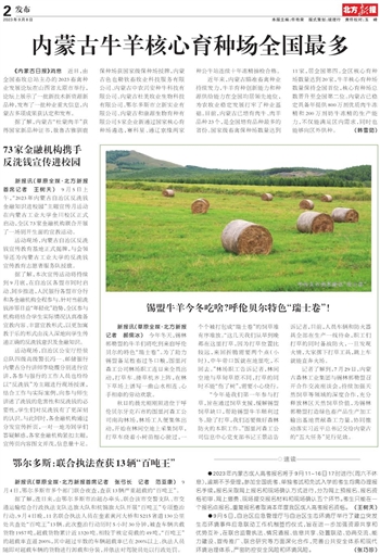 近年来,内蒙古瞄准畜禽种业持续发力,牛羊育种创新能力和种源供给能力在全国均居领先地位,为农牧业稳定发展打牢了种业基础。目前,内蒙古已培育肉牛、肉羊品种23个,是全国培育品种最多的省份。国家级畜禽保种场数量达到11家,居全国第四。全区核心育种场数量达到20家,牛羊核心育种场数量保持全国首位,核心育种场总数晋升至全国第二位。内蒙古已稳定具备年提供800万剂优质肉牛冻精和200万剂奶牛冻精的生产能力,不仅能满足区内需求,同时也能够向区外供种。(韩雪茹)