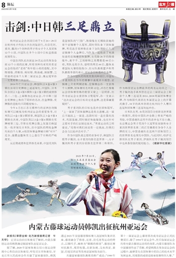 作为中国队最主要的竞争对手,韩国队目前男子佩剑、女子重剑均排名世界第一,女子佩剑和男子重剑分别排名世界第二和第四。作为韩国亚运金牌最多的两名运动员之一,男子佩剑选手具本佶在过去三届亚运会上斩获个人赛三连冠及2014、2018两届团体赛金牌。作为韩国代表团在本届亚运会上的开幕式旗手,34岁的具本佶将在杭州向个人赛四连冠和团体赛三连冠发起冲击。
