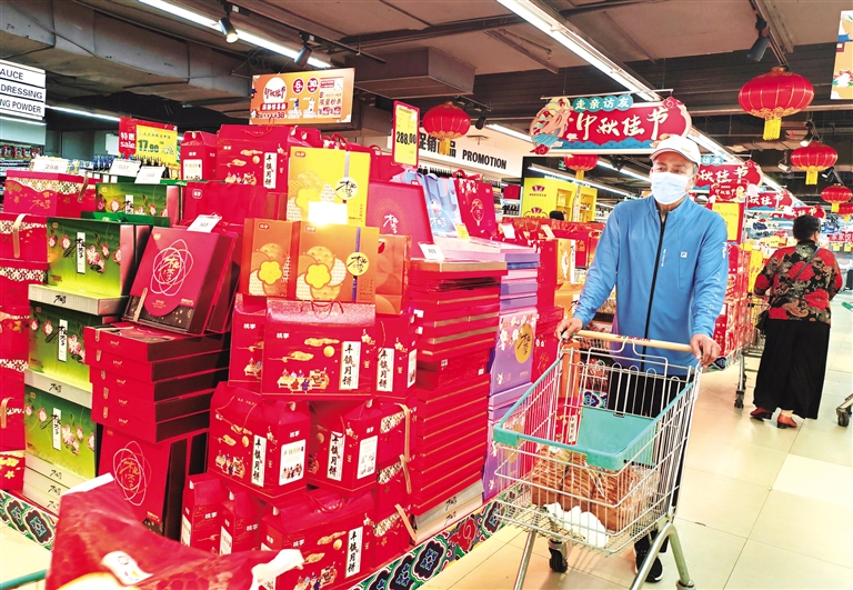 9月20日,记者在华联超市、家家悦超市以及百家润、羽神生鲜等超市看到,随着节日临近,前来购物的消费者逐渐增多。走访中,记者未看到超过500元的盒装月饼,大部分月饼礼盒价格在100~300元之间。在销售的月饼中,除了五仁、玫瑰蜂蜜、蛋黄、枣泥等常规口味外,草原乳酪、草原沙棘、奶豆腐等口味的月饼也非常受消费者欢迎。家家悦超市金桥店月饼销售区域工作人员告诉记者,本土散装的丰镇月饼和奶食品月饼由于口感好、价格低相对更受欢迎。