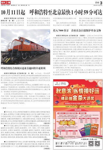 ●10月7日起,首府公交车开始执行冬季运营时间。市内常规线路:首班车6:10分发车,末班车20:00发车;二环一号线、二环二号线:首班车6:10发车,末班车19:00发车;社区线路:首班车7:00发车,末班车19:00发车。地域文化专线、大黑河休闲专线、绿色生态专线、敕勒川草原专线、水磨村观光线、南三环旅游专线、夜间1号线、夜间2号线、夜间3号线、夜间4号线、夜间5号线、夜间6号线、夜间7号线、夜间8号线暂停运营。