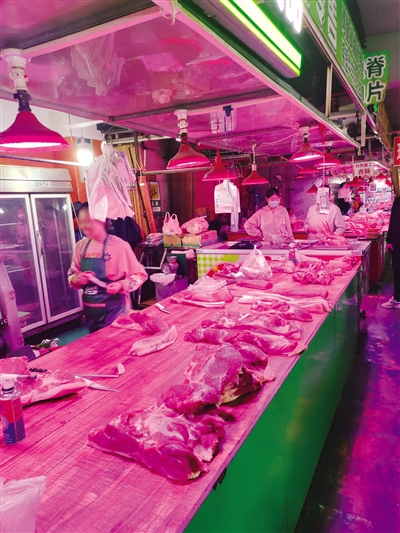 “我很早就发现这个问题了,有一次买肉时挑得好好的,等回家打开一看,颜色快发黑了。当时,我拿着肉去找摊主,没想到,肉放到摊位灯底下,又红得好看。你说,这不是欺骗消费者吗?”在海拉尔东街呼铁佳园附近一家农贸市场内,正选购猪肉的李女士对记者说,“‘生鲜灯’灯确实误导了我们,应该被取消。”