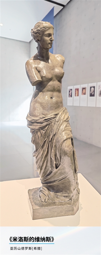 一入馆,抬眼便能看见《神遇——孔子与苏格拉底的对话》。依次看去,风格迥异的国内外经典雕塑作品,展示出中西方文化的交融和碰撞。作者包括艺术史上赫赫有名的西方大师,如阿历山德罗斯、米隆、米开朗基罗、罗丹、马约尔,也有吴为山、曹春生等代表东方文化的一批雕塑大家。在这些雕塑精品中,有抽象简洁的,有夸张浪漫的……每件雕塑作品下都好似住着一个灵魂,表达着情感,诉说着哲理。