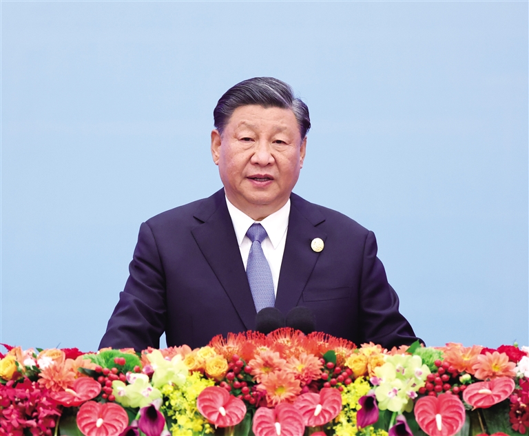 习近平指出,中国正在以中国式现代化全面推进强国建设、民族复兴伟业。我们追求的不是中国独善其身的现代化,而是期待同广大发展中国家在内的各国一道,共同实现现代化。世界现代化应该是和平发展的现代化、互利合作的现代化、共同繁荣的现代化。中方愿同各方深化“一带一路”合作伙伴关系,推动共建“一带一路”进入高质量发展的新阶段,为实现世界各国的现代化作出不懈努力。