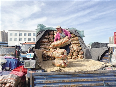 在万惠农贸市场,记者了解到,冬储菜的批发价格非常亲民,大白菜0.3~0.35元/斤,大葱0.6~0.8元/斤,芥菜0.5~0.6元/斤,土豆0.9~1.2元/斤……商户范磊说,他经销的大白菜来自河北唐山,今年白菜产量大、供应足,每次购进6.6万斤白菜,线上、线下同时销售,基本上两天就可以卖完。商户田二毛货车上的毕克齐大葱也已经销售大半,他说,今年大葱产量高,价格便宜,3天就能卖8000斤。