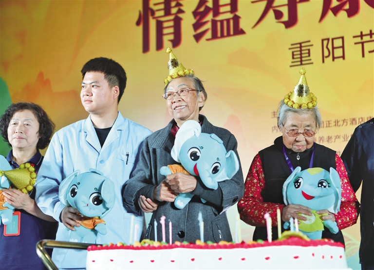 10月23日,老人们收到生日礼物很开心。当日,在内蒙古自治区示范性康养公寓内,入住老人及家属、参访团体、受邀嘉宾等欢聚一堂,开展了重阳节文艺汇演活动。活动在舞蹈《故乡的奶茶》中拉开帷幕,手风琴弹唱、晋剧、大合唱、马头琴重奏等精彩节目轮番上演。在刀刻表演环节,只见表演者付军义动作娴熟且迅速地用刀雕刻出“福寿康宁”4个大字,获得阵阵掌声。同时,康养公寓还为10月过生日的老人们举行了集体生日会,蛋糕、蜡烛、许愿、礼物,满满的仪式感让老人们心里很温暖。文·摄影/草原全媒·北方新报记者 马丽侠