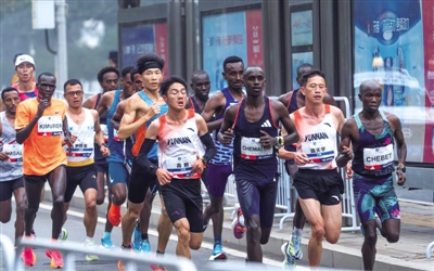 北京马拉松,陈天宇(前排右二)夺得国内男子组冠军,成绩为2小时08分11秒,这不仅是北马历史国内选手最好成绩,也是中国马拉松历史第三好成绩。