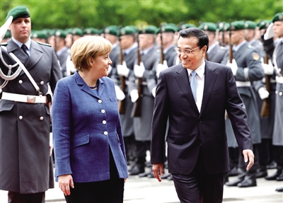 | 2013年5月26日,李克强同志在柏林出席德国总理默克尔举行的欢迎仪式。