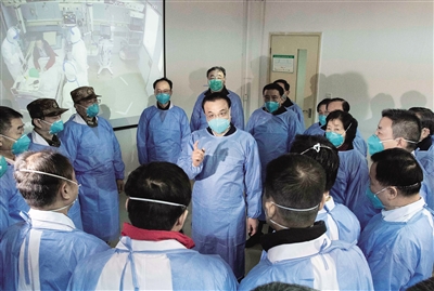 | 2020年1月27日,李克强同志赴湖北省武汉市考察指导疫情防控工作,代表党中央、国务院慰问疫情防控一线的医务人员。 摄影/新华社记者 李 涛 |