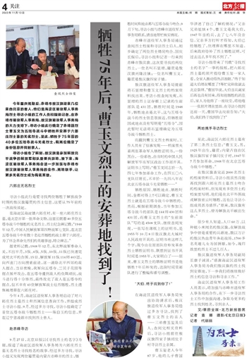 牺牲75年后,曹玉文烈士的安葬地找到了!