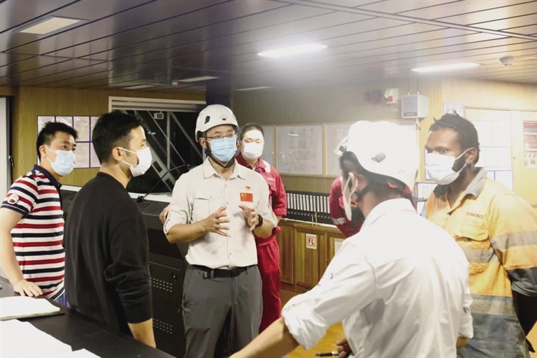 经过商量,考察队向当地海事搜救部门进行了报告,建议安排救援船只,同时安排求救船只的一名代表登船和家属进行电话沟通,并通过家属联系到求救人员居住地的救援组织。