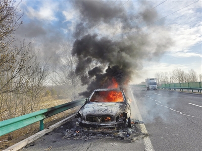 事故发生后,赤峰市消防救援支队三道东街特勤站立即出动一辆抢险救援消防车、一辆水罐消防车及10名消防救援人员赶赴现场处置。9时10分,救援人员到达火灾现场,彼时火势正呈猛烈燃烧阶段,车身整体全部过火,现场黑烟滚滚,所幸无人员被困。根据现场情况,指挥员立即下达作战命令:战斗小组出一支水枪对火势进行压制、控制蔓延。经过十几分钟的扑救,火势被完全扑灭。为防止复燃,救援人员又对各个角落进行了逐一检查和清理,确定无复燃可能后,将现场移交车主。