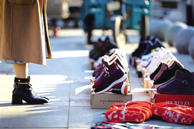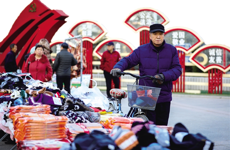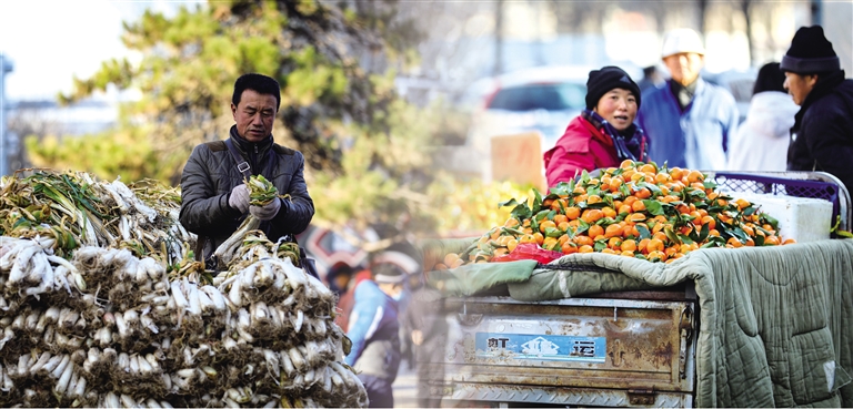55岁的张林叶是大黑河村村民,从夏天时就在这里摆摊做买卖。“这里是政府设置的便民服务点,不收摊位费,夏天自家种的蔬菜瓜果卖得很好。这些豆角、茄子是我凌晨从美通批发的,摆上一早晨就收摊啦!”张林叶一边给顾客打包蔬菜一边对记者说。