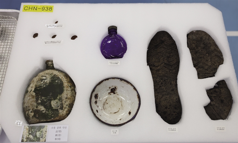 这是11月22日在韩国仁川拍摄的志愿军烈士遗物。摄影/新华社记者 曹 灿