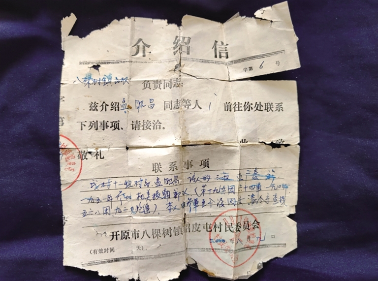 2000年时,孟昭昌还揣着村里给开的介绍信(如图2)去查找三叔的消息,但是一直没有任何线索。